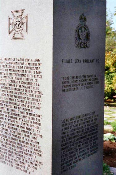 This memorial is dedicated to the memory of Captain Jean Brillant, V.C.