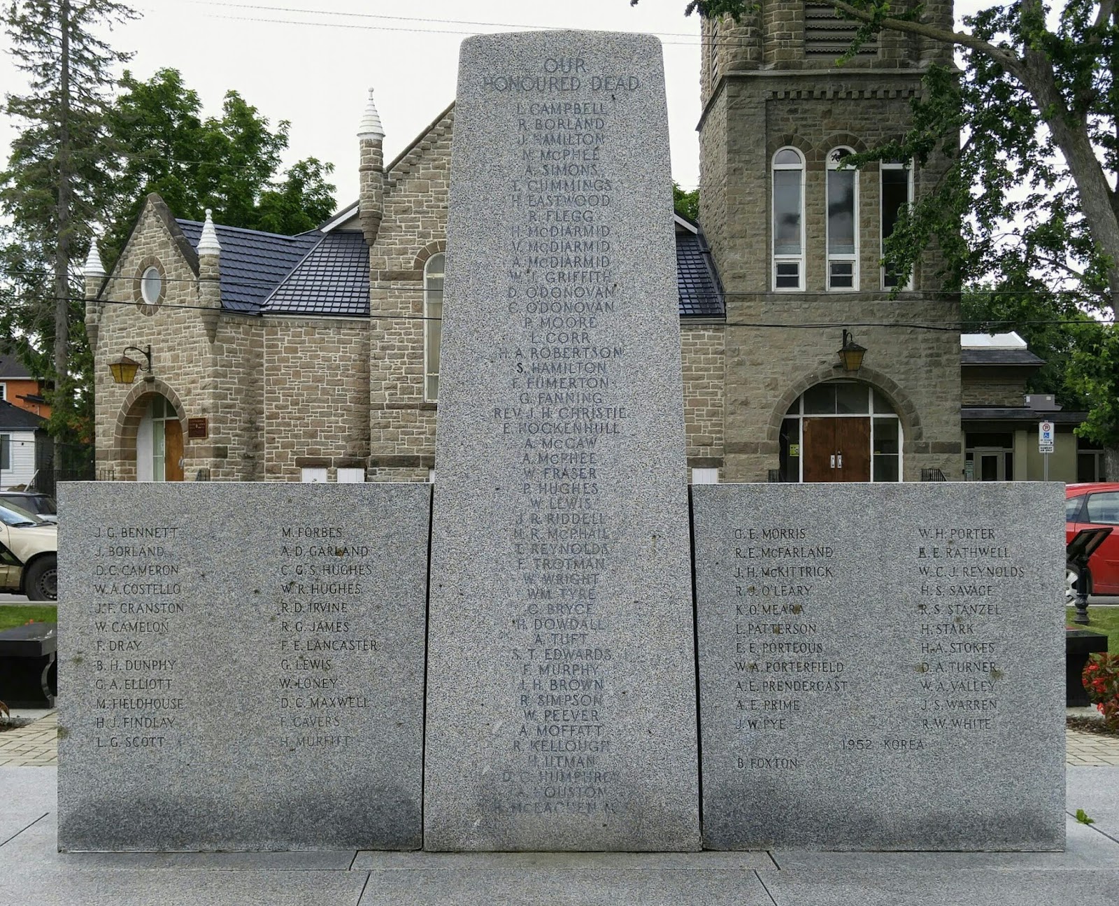 After the First World War, a Memorial Park commission was appointed by municipal by-law in 1920. The Cenotapht was unveiled in 1924. The local Captain Hooper Chapter of the Imperial Order of the Daughters of the Empire was instrumental with the construction of the local Cenotaph in Memorial Park, which today is located beside the local library.
