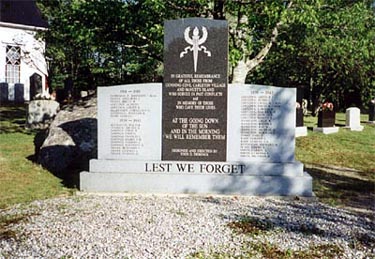 The Carleton Village Cenotaph was constructed in 1988 in memory of all who served in the First and Second World Wars from Gunning Cove, Carleton Village and McNatts Island. The monument, located in St. Paul's United Church cemetery, was designed and constructed by Enos. O. Demings at his own expense and he provides the upkeep and maintenance. The dedication ceremony was held on Nov. 26th, 1988, with the Clergy of the Church and members of Royal Canadian Legion Branch 63 in attendance. Every November there is a wreath laying ceremony held by the Royal Canadian Legion Br. 63 with Public attendance.
