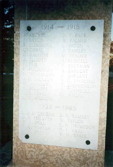 Erected by the town of Carnduff and the Royal Canadian Legion, this memorial is dedicated to the local war dead of the First and Second World Wars.