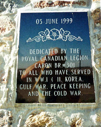 DEDICATED BY THE ROYAL CANADIAN LEGION CARON BR. # 301