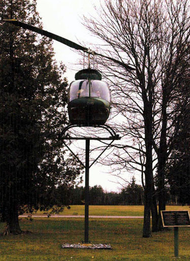 MONUMENT ÉRIGÉ EN L'HONNEUR DE CEUX DU 403E ESCADRON D'ENTRAINEMENT TACTIQUE (HÉLICOPTÈRE) ET DU 422E ESCADRON D'HÉLICOPTÈRE D'APPUI TACTIQUE, QUI ONT TRAVAILLÉ AVEC LE CH-136 (KIOWA) ET LA CH-135 (TWIN HUEY) AU CIC GAGETOWN