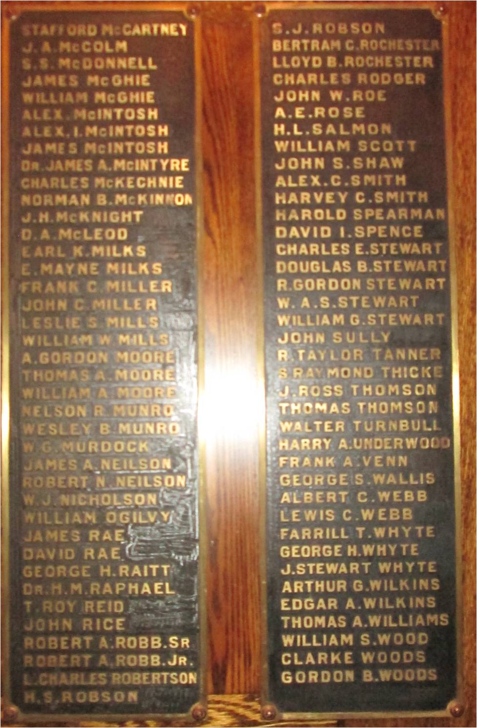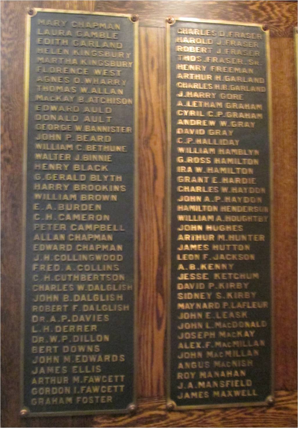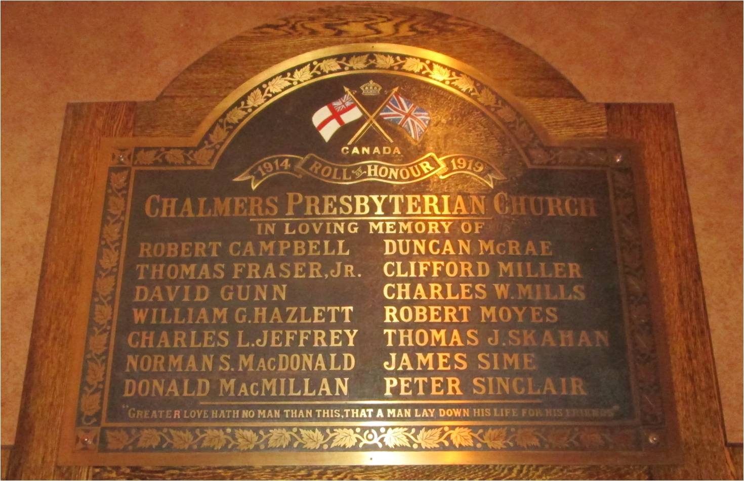 This memorial was unveiled in honour of the members of the Chalmers Presbyterian Church who served in the First World War.