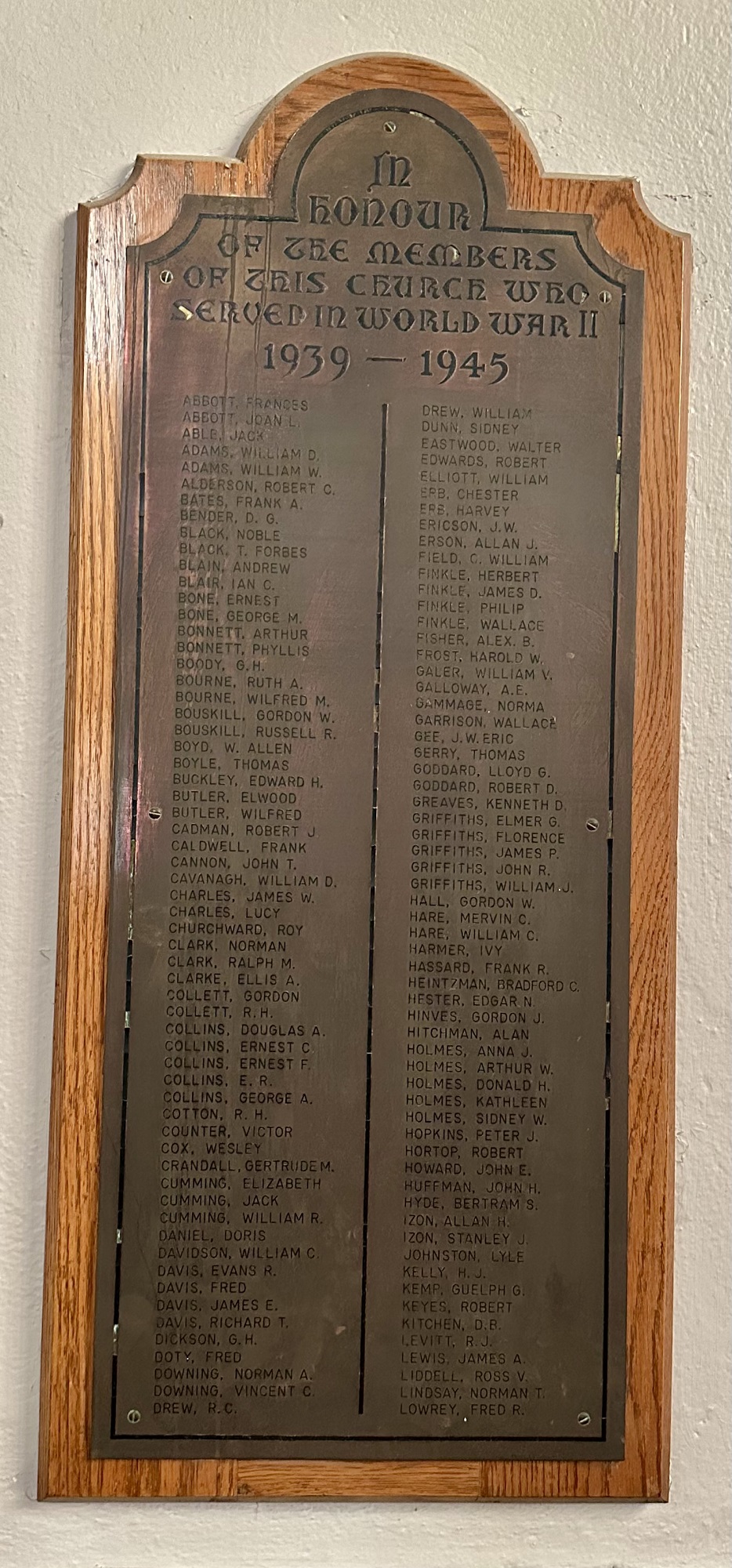 The Church of the Epiphany Second World War Plaques were erected in memory of the members of the congregation that served in the war. These plaques are located on both sides of the Church of the Epiphany Second World War Window. The Church of the Epiphany was located at 1515 Queen Street West until it was sold on 11 June 1983 to the Our Lady of Lebanon Parish.