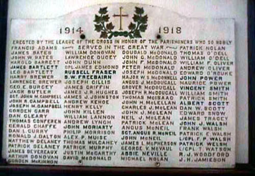 ERECTED BY THE LEAGUE OF THE CROSS IN HONOR OF THE PARISHONERS WHO SO NOBLY