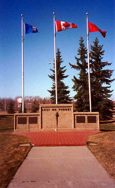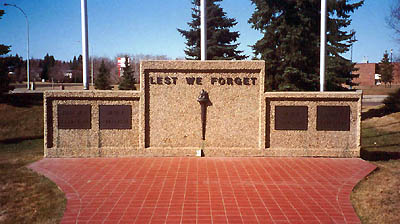 This memorial is dedicated to the War Dead. It was erected by the County of Strathcona. It is approximately 5 feet high and 15 feet wide.