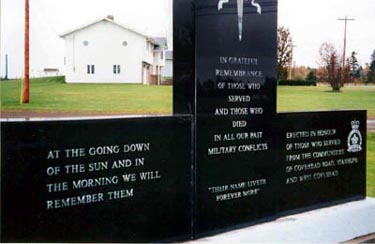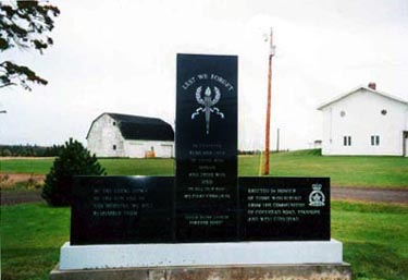 Erected by the communities in the area, this memorial is dedicated to the war dead and veterans of Covehead Road, Stanhope and West Covehead.