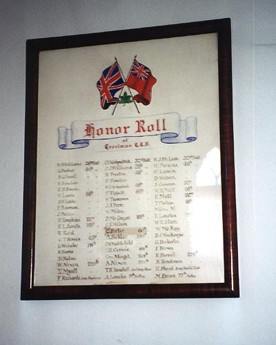 This certificate lists the names of local men who served in the Canadian Expeditionary Force during the First World War.
