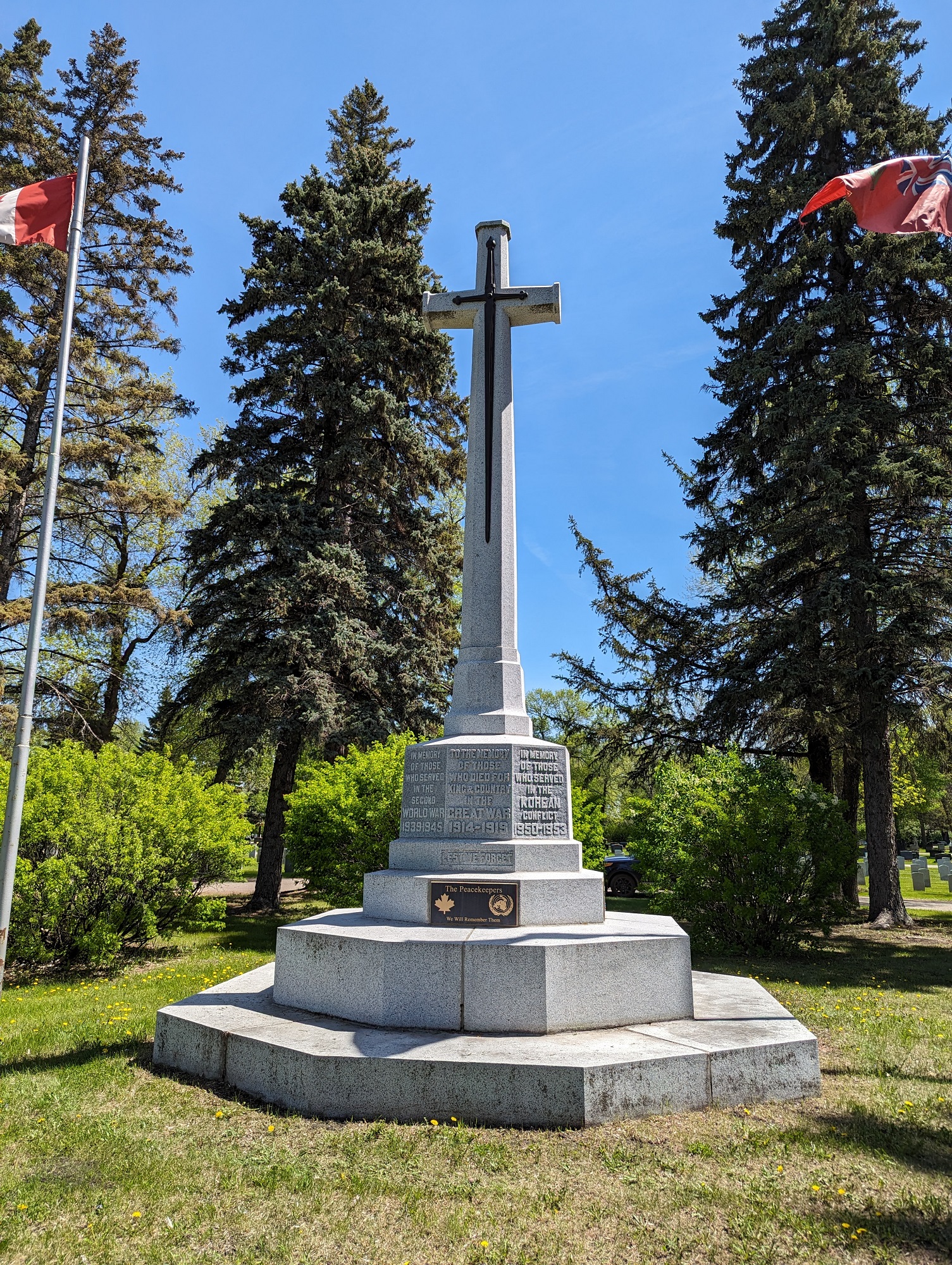 This memorial was erected in 1924 and dedicated to the local war dead of the First World War. When it was first installed, only the center inscription exisited. Inscriptions to honour Veterans of the Second World War, Korean War, peacekeepers and Afghanistan were added later.