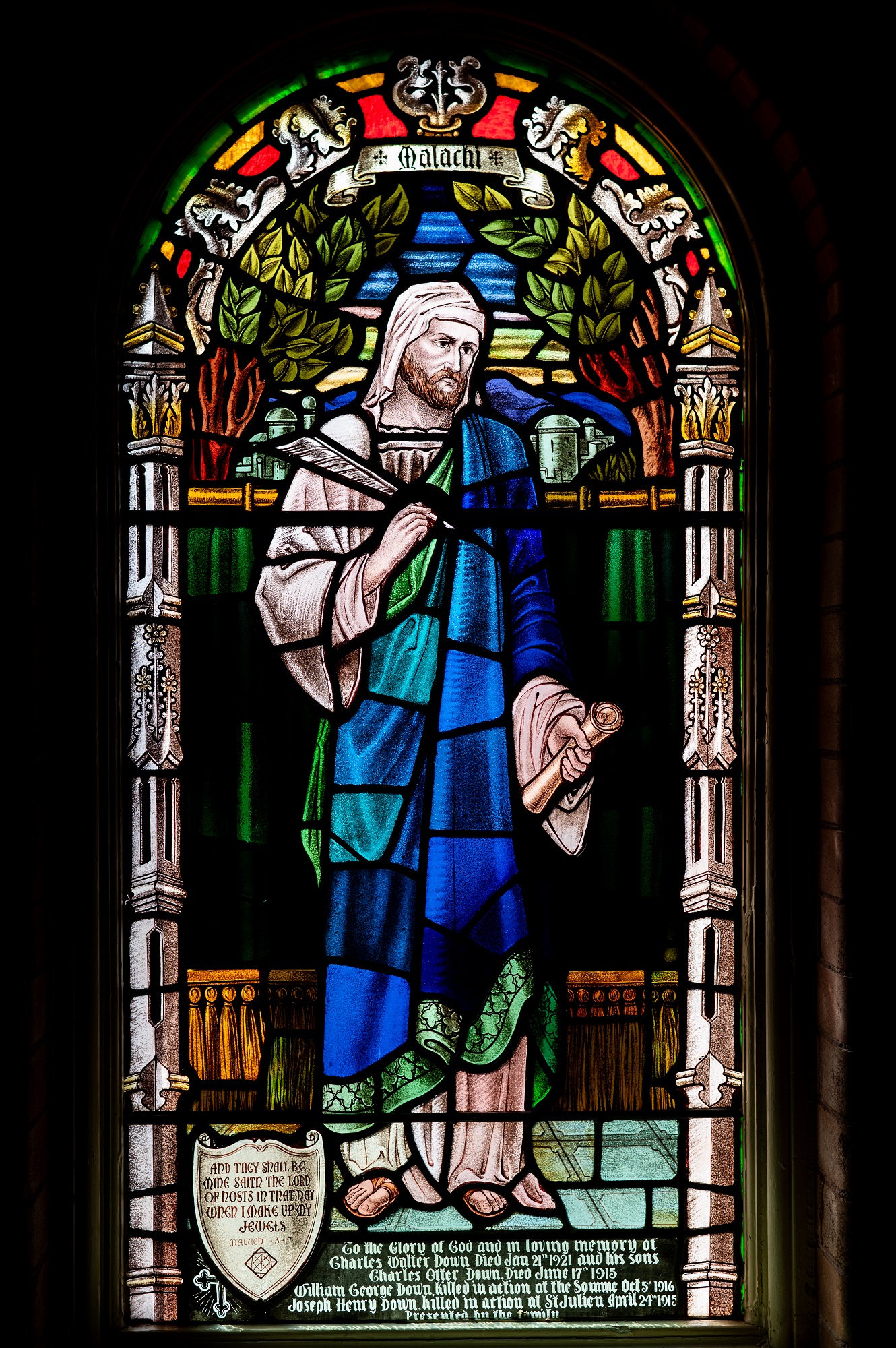 The Down Window was erected by the family in memory of Charles Walter Down, died January 21, 1921, and his sons Charles Otter Down, died June 17, 1915; Private William George Down, killed in action at the Somme Oct 5th 1916; and Sapper Joseph Henry Down, killed in action at St. Julien April 24, 1915. His son Private Richard E. Down served with the No. 2 General Hospital in England and survived the First World War. Charles Otter Down, who died at home, was quartermaster of the 13th Field Ambulance.
