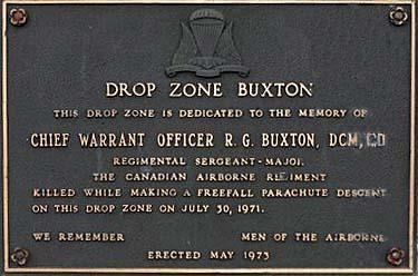 Drop Zone Buxton was named in honour of Chief Warrant Officer Richard George Buxton who was killed in a freefall parachute descent on this drop zone on 30 July 1971. A cairn was erected at the Buxton Drop Zone in May 1973.