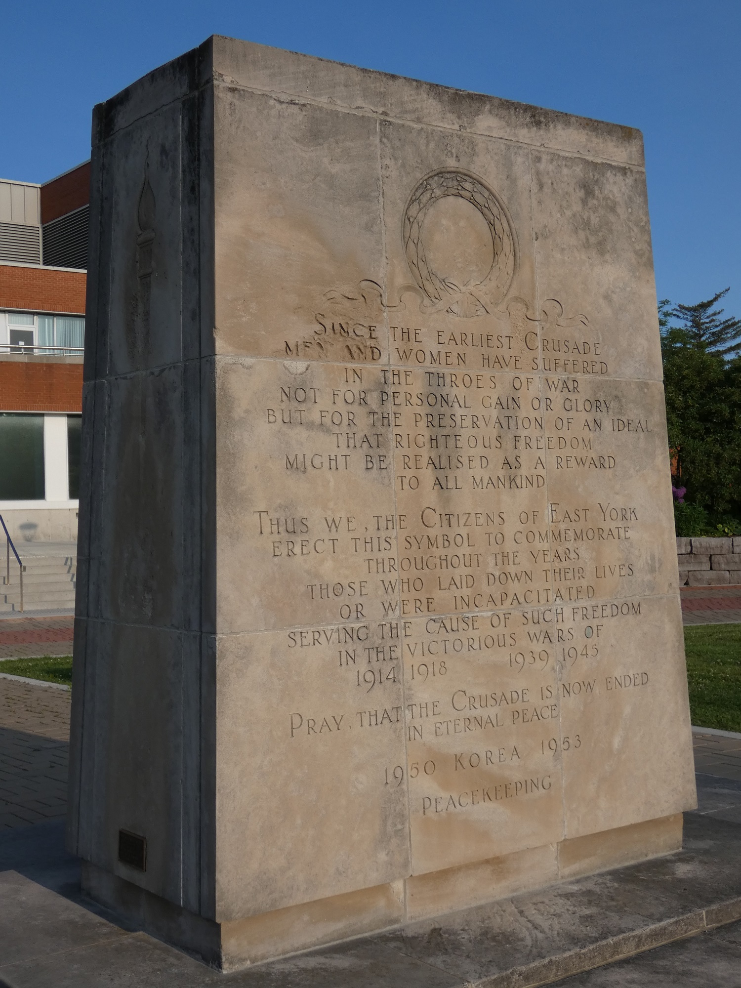 There is a cenotaph in the Memorial Gardens which was erected in honour of the courage and sacrifice of those who served during war, courage and peace. The site hosts annual Remembrance Day commemoration events.