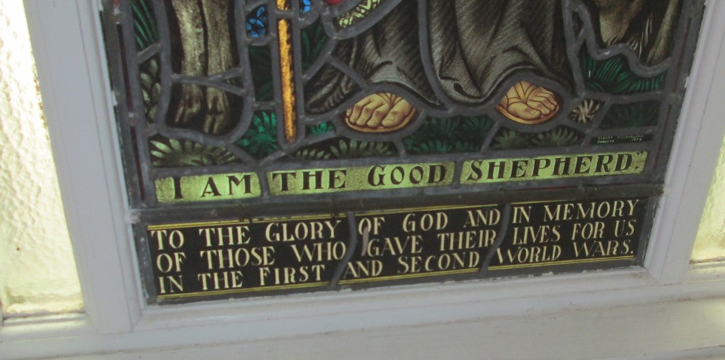This stained glass window is dedicated to the members who gave their lives in the First and Second World War.