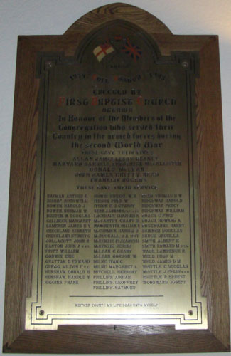 This plaque is dedicated to the members of the First Baptist Church Ottawa who gave their lives and those who served during the Second World War.