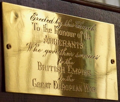 This memorial Roll of Honour erected by the St. Andrew's United Church is dedicated to its adherants who gave their services to the British empire in the Great War.