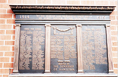 The Bewdley First World War Honour Roll is dedicated to those who served in the First World War and was erected by the Township of Hamilton.