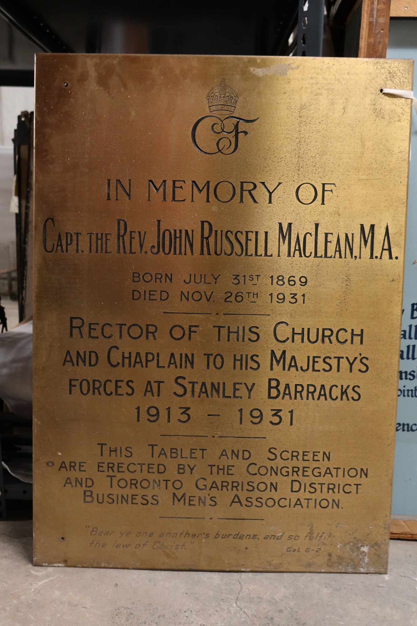 On March 4, 1922, a ceremony was held at St. John the Evangelist (Garrison Church) for the formal opening of a Medical Mission in honour of members of the congregation and parishioners who lost their lives in the First World War. It was established under the leadership of the rector, Captain the Reverend John Russell MacLean, and ran until sometime after the Second World War. Four hundred men from the parish answered the call during the First World War. Of these, 40 paid the supreme sacrifice. The ceremony was conducted in the crypt by Bishop James Fielding Sweeny where the brass tablet erected to the gallant dead was blessed.