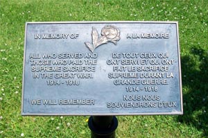 On May 25, 2002, at the official opening of Veterans Way, this plaque dedicated to military personnel who served in the First World War was unveiled.