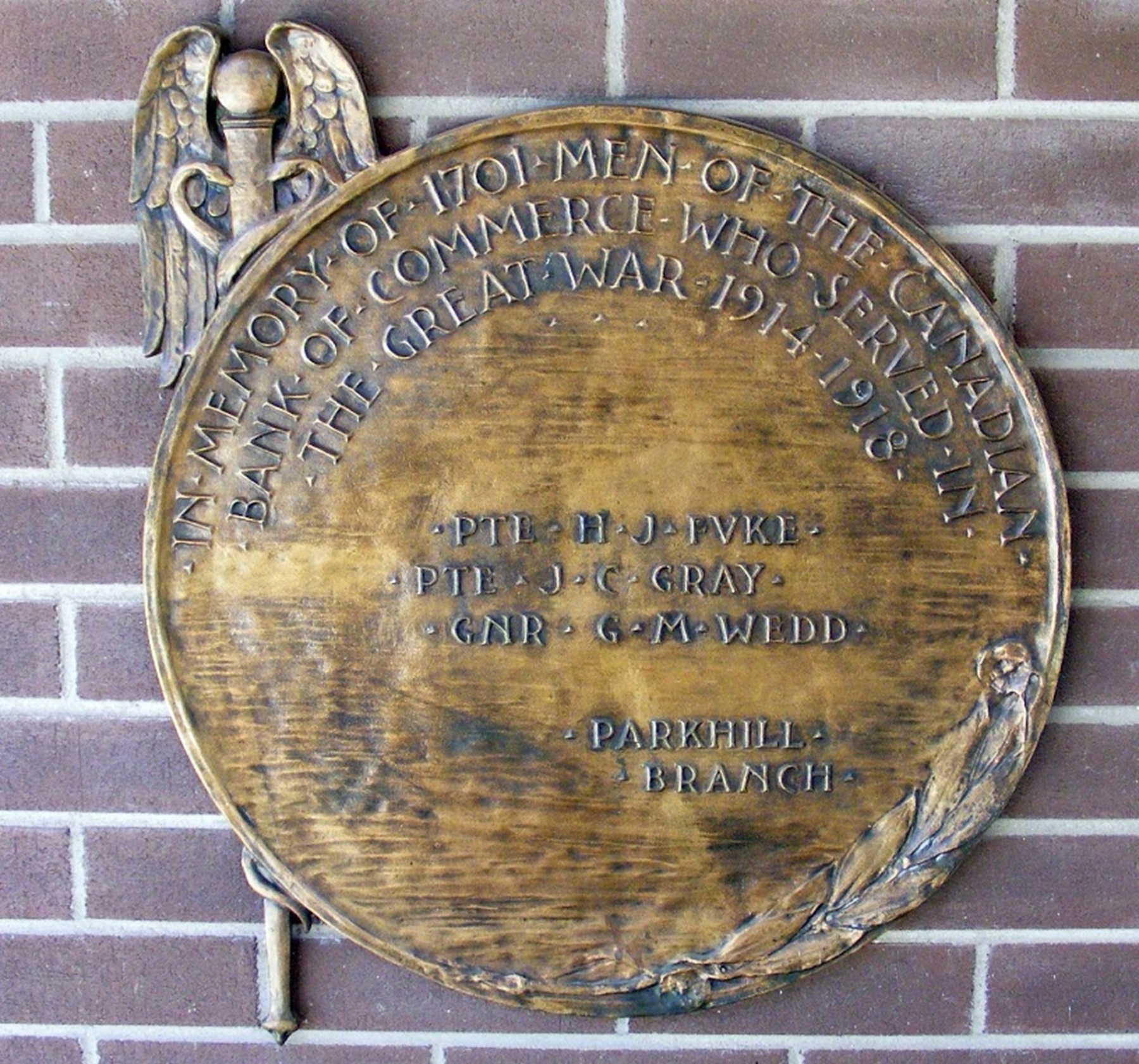 Parkhill Canadian Bank of Commerce First World War Plaque