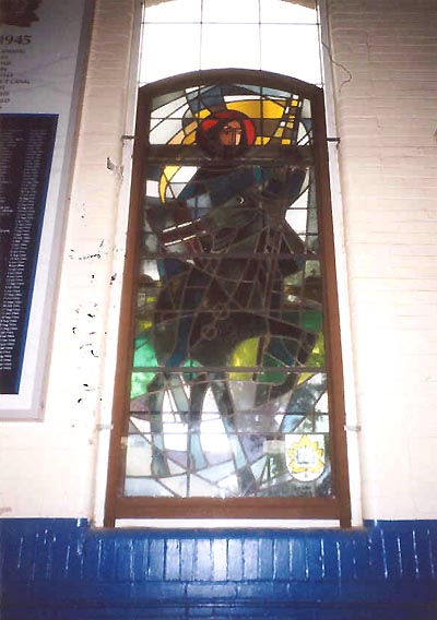 These windows were originally constructed for the regimental church in Hemer, West Germany, when the Regular Force battalion of the Fort Garry Horse was stationed there from 1962 to 1966. They were later removed from the church and transported to Winnipeg as a memorial to the regiment's service in Europe.