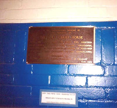 This plaque is dedicated to the members of the Fort Garry Horse who participated in the liberation of The Netherlands in 1944-45. It was donated to the regiment by the Dutch-Canadian community in Winnipeg in May 1970.