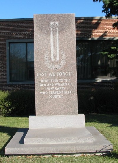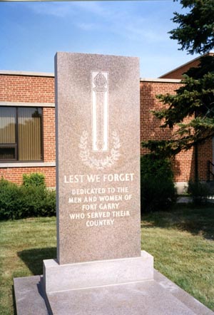 Erected by the city of Winnipeg, this memorial is dedicated to the men and women of Fort Garry who have served in the military.