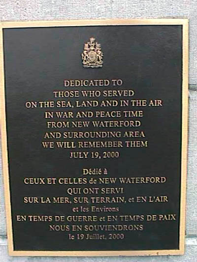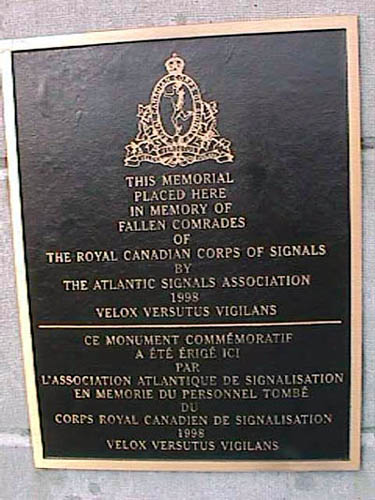 One of these three plaques is dedicated to those from Sydney who participated in protecting shipping on the North Atlantic and erected by the Historic Sites and Monuments Board of Canada. Another plaque is dedicated to all those from New Waterford and surrounding area who served in war and peace time. It was erected in July 2000. The third plaque is dedicated to the members of the Royal Canadian Corps of Signals who died while serving their country. It was erected by the Atlantic Signals Association in 1998.