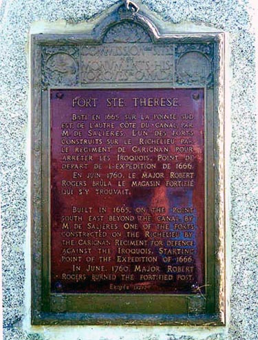 [Note: This plaque contains an error. It should read Fort Ste-Thérèse and not Ste. Thérèse./Cette plaque contient une erreur. Il faudrait lire « Fort Ste-Thérèse », et non « Fort Ste. Thérèse ».]