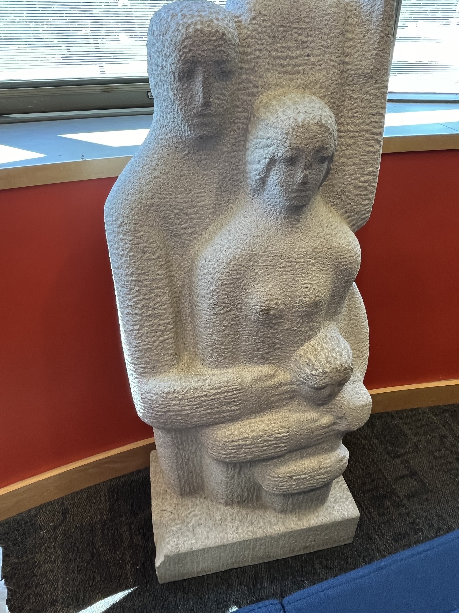 Miss Sisler initially submitted a column design, but by now the library was underway and the piece would be lost in its architecture. From further discussion with Miss Sisler evolved the concept of a family group as the basic social unit of society. The Committee approved of the model made by Miss Sisler, and only the task to bring the ideas into being remained.