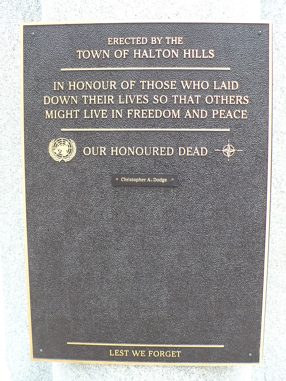 The Korean War plaque was unveiled by Mayor Joseph Gibbons during the Remembrance day ceremony on November 11, 1965. In 2000, the Dutch Canadian Remembrance Committee, and many others who helped, refurbished the memorial and moved it to its current location.