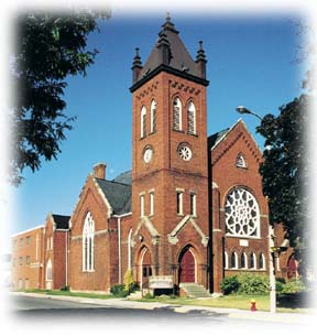 This memorial is part of the large stained glass window on the Main Street wall. It was dedicated in 1919 by the Harrop family for their son, Cedric, and his friend Fred Walsh. Fred died in the battle of the Somme; in three months of fighting 25,000 Canadians were killed or wounded. Cedric Harrop was killed on the second day of the short but disastrous battle of Passchendaele (Belgium). In 13 days of this controversial action, the Canadian casualty list - dead and wounded - reached 15,000. David Harrop, a member of St. Paul’s who died in the Second World War, was a nephew of Cedric.