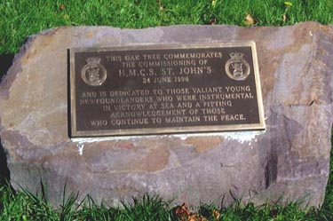 This memorial commemorates the commissioning of the HMCS St. John's, June 24, 1996. Also it is dedicated to the Newfoundlanders who fought at sea, and to those who still maintain the peace.