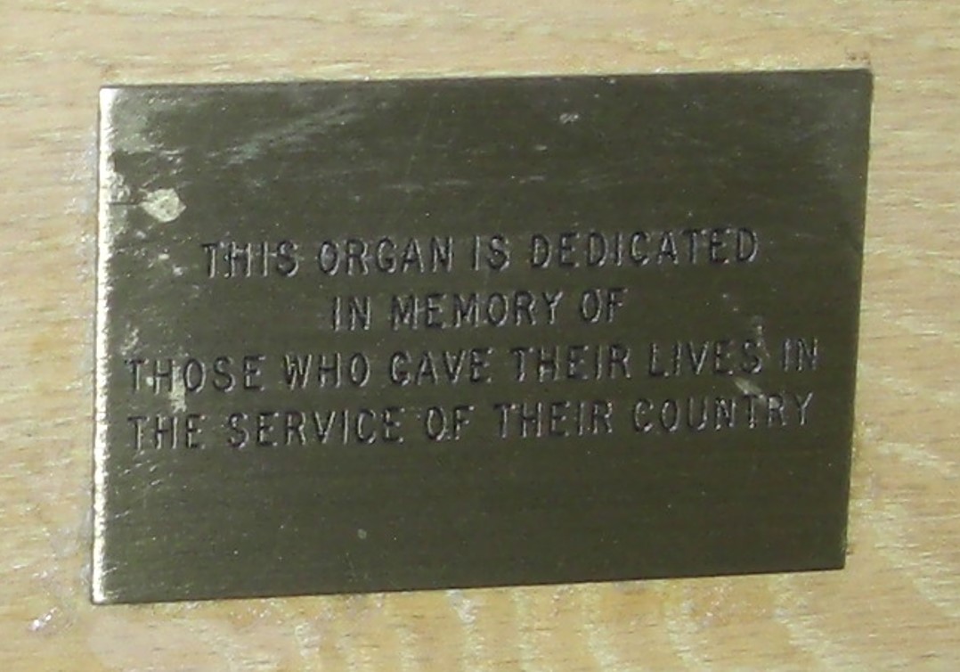 This organ is dedicated in memory of those who gave their lives in the service of their country.