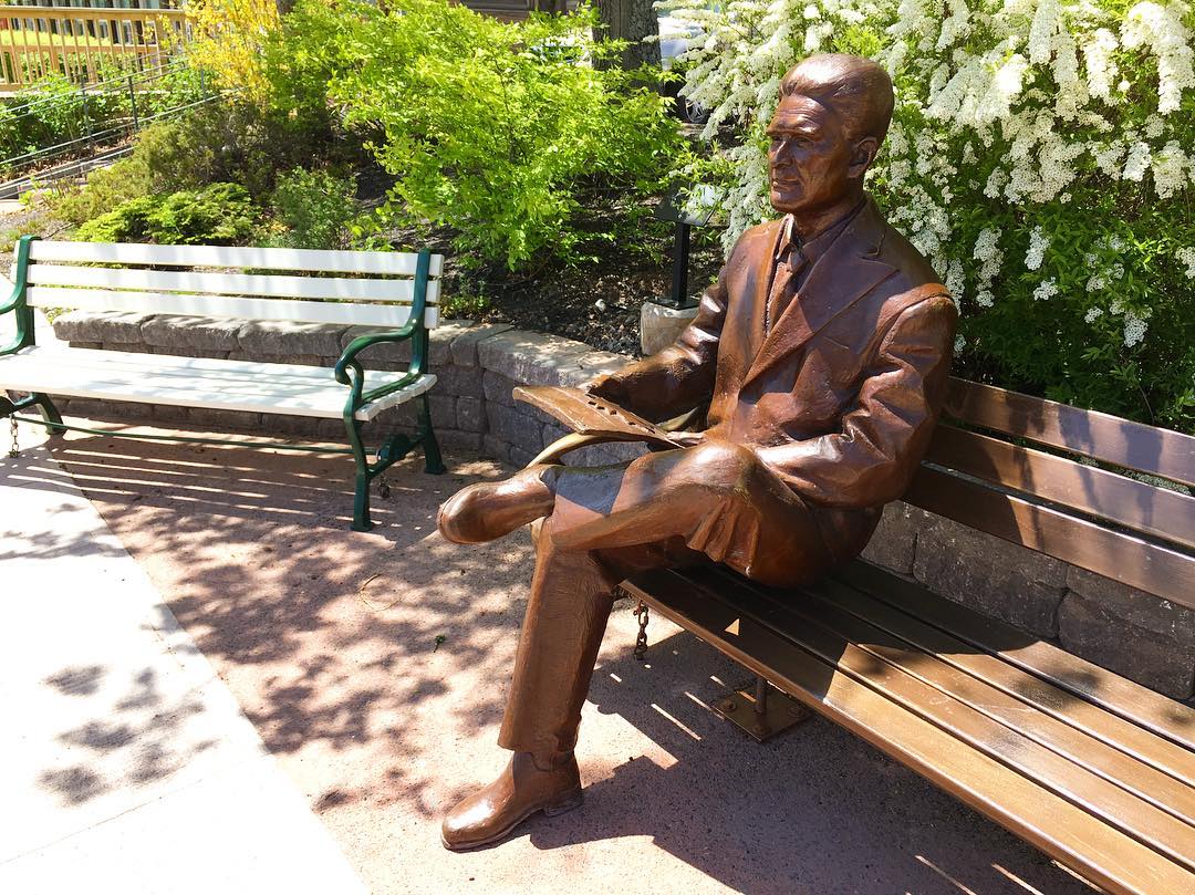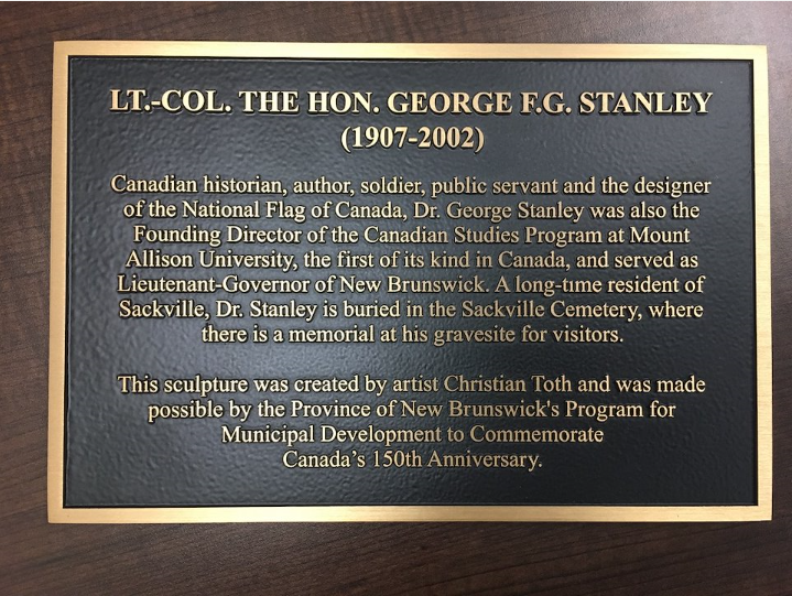 The Honourable George Stanley Sculpture was completed by artist Christian Toth. It is a life size bronze sculpture of the designer of the Canadian flag,  seated on a bench. Christian also custom designed and partially refurbished the bronze bench. He manufactured and welded eight custom sized steel slats into existing iron cast end bench caps and painted the entire piece bronze to match the sculpture.