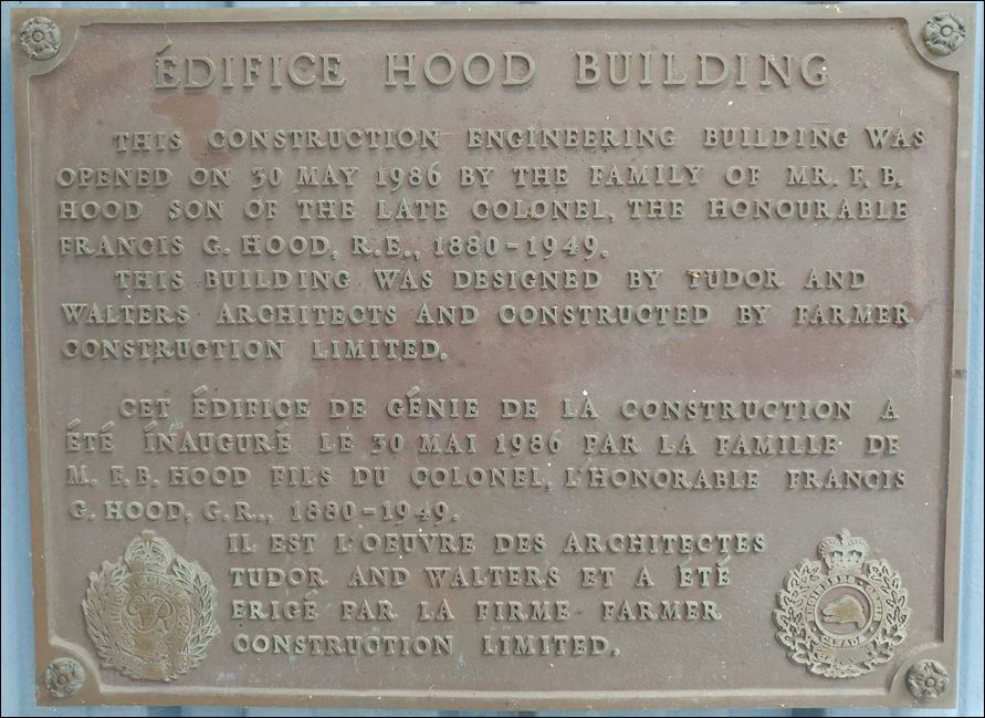 Hood Building, the Base Construction Engineering building at CFB Esquimalt, is named in honour of Colonel, The Honourable Francis G. Hood, Royal Engineers. Then Lieutenant Hood was the Commanding Officer of the 48th Submarine Mining Company, RE from 1902 to 1906. The Company’s headquarters and buildings were located on the present-day site of the Base Construction Engineering building.