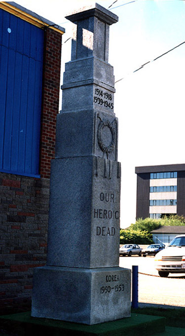 This memorial is dedicated to all those who died in the First and Second World Wars as well as the Korean War.