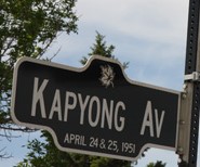 Kapyong Avenue was dedicatedto the members of the Princess Patricia’s Canadian Light Infantry who fought in the Battle of Kapyong by the Canada Lands Company on June 23, 2004, as part of their redevelopment of Edmonton’s former Canadian Forces Base (Griesbach Barracks).