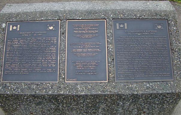This memorial, placed in 1998 on the site of a radar station used during World War II, honours those who served during the Korean War as part of the 2nd Battalion Princess Patricia's Canadian Light Infantry. Members of this group were the first Canadian soldiers to set sail across the Pacific to serve in the Korean War in November of 1950, and helped in the Battle of Kap'Yong in April 1951, which was a turning point in the war.