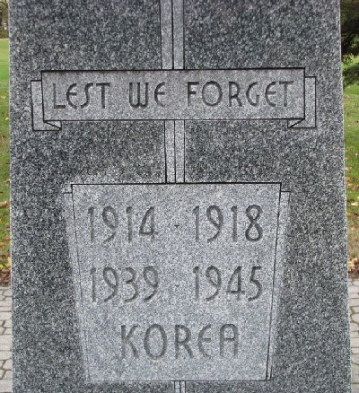This memorial is dedicated to the veterans of the First World War, Second World War, Korea and to Peacekeeping.