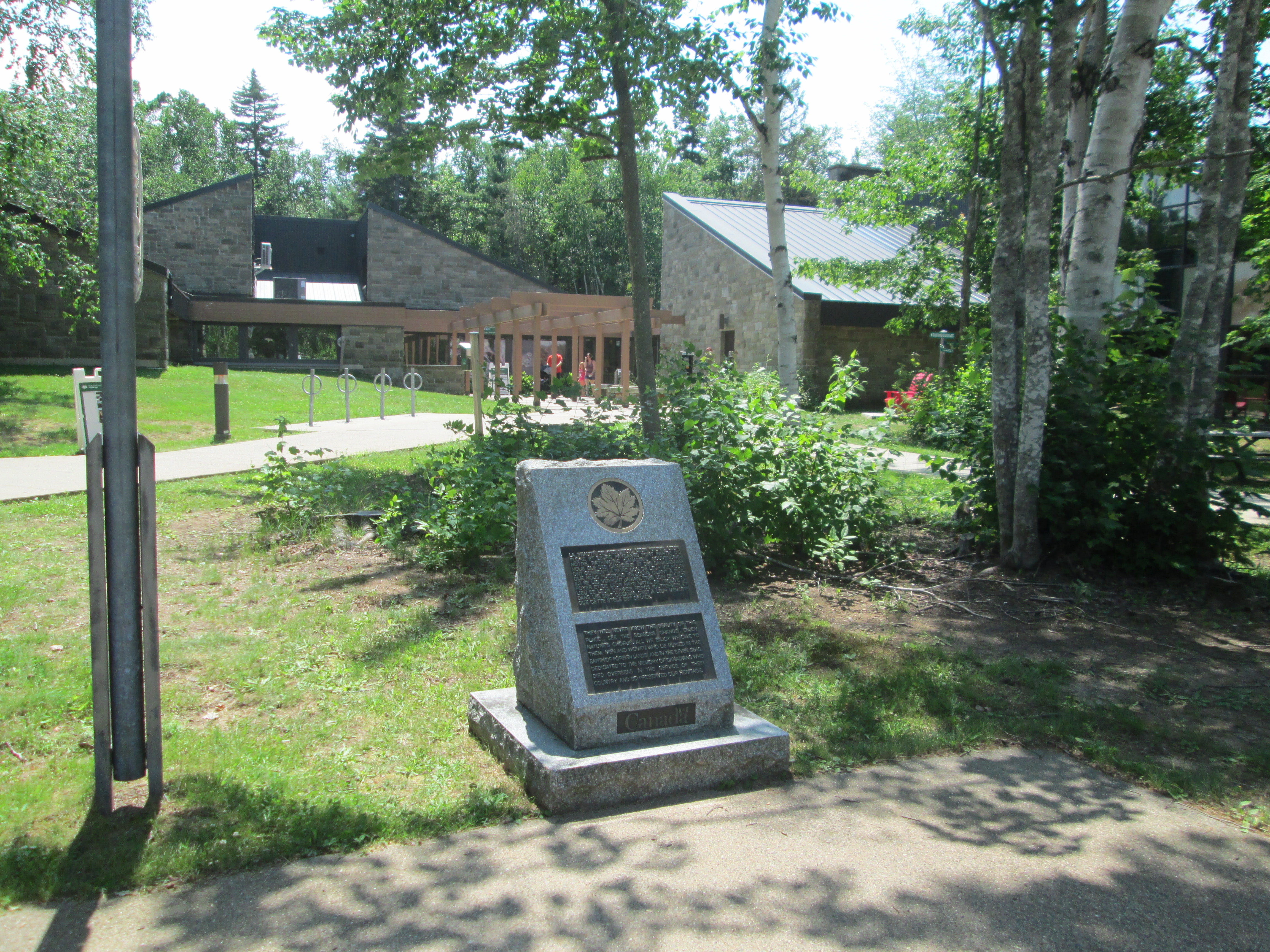 La beauté de ces lieux, leur faune, leur flore et leurs paysage font partie de notre patrimoine canadien. Souvenons-nous que les Canadiens et Canadiennes ont consenti à faire don de leur vie pour que nous puissions en jouir. Quant à eux, ils ne les verront jamais. Très loin de leur foyer et de leur pays natal se trouve le lieu de leur dernier repos (outre-mer et dans les sept océans). C’est à leur mémoire que cette stèle est dédiée.