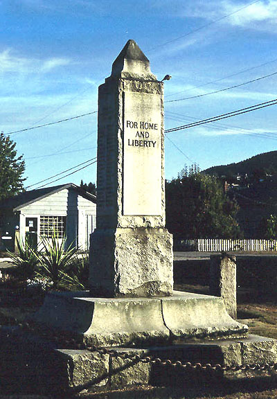 There are 41 First World War soldiers with a Ladysmith connection (born, lived or worked in Ladysmith and district) that are listed on the cenotaph. The list was compiled by the Ladysmith Chronicle and City Hall in the fall of 1922. People were requested to submit names of people they thought should be on the cenotaph. Soldiers listed come from the then City of Ladysmith and the surrounding district which was comprised of the original Oyster District, and included Saltair and Blaineys Crossing to the south of Ladysmith, and Brentons Crossing, North Oyster, Yellow Point, part of Cedar, Cassidy, South Wellington and Extension north of Ladysmith. Some of the war dead from areas north of Ladysmith were well known in Nanaimo as they were in Ladysmith and are on both cenotaphs. The original cenotaph dedicated in early 1923 had 40 names on it. Thomas Day's name was added later and so were the Korean War dates.