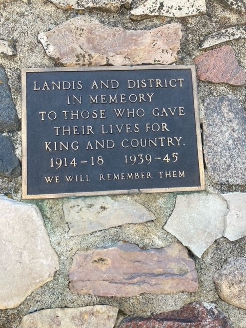 The Landis Cenotaph was unveiled in October of 1967. It was erected by the Landis Branch 198 of the Canadian Legion British Empire Service League.