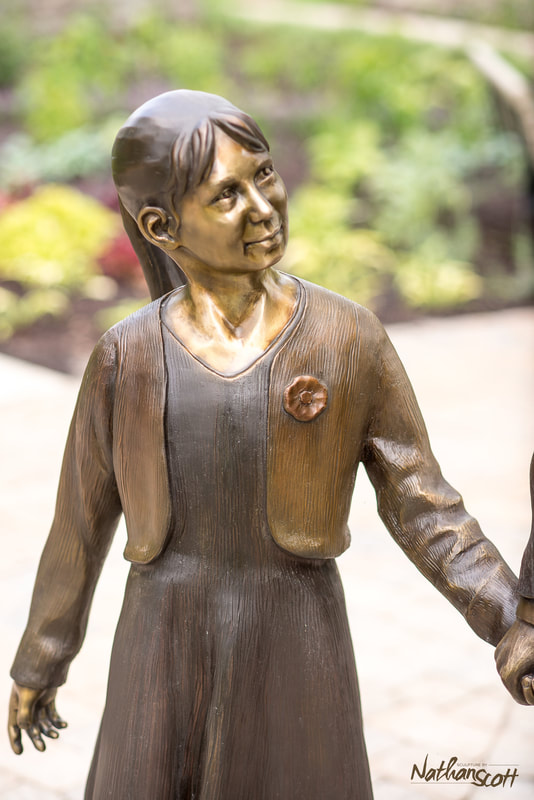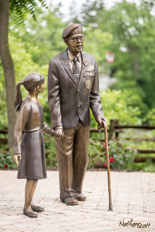 The sculpture is a loving tribute to the aging Veteran and all he stands for and the power of family ties. The granddaughter is trying to connect with the grandfather as he gazes at the cenotaph. It provokes memories and conversations about the importance of remembering for generations to come.