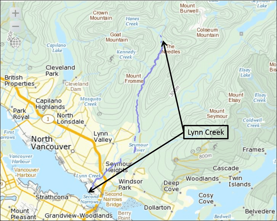 Lynn Creek is named in honour of Sapper John Linn, Royal Engineers, a member of the Columbia Detachment, a military unit that served in the lower mainland of BC from 1859 to 1863. The Linn family name was frequently misspelled “Lynn”, and that spelling of the creek name came into use at an early date. The name was used as early as 1878 to identify this area, but registered for use with the Government of Canada on December 7, 1937.