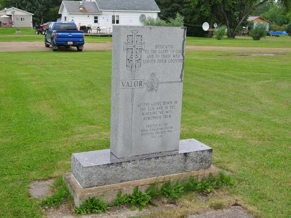 Dedicated to the glory of God and those who served their country. Valor. At the going down of the sun and in the morning, we will remember them. Erected by the Royal Canadian Legion Mafeking Branch No. 93 1974 A.D.