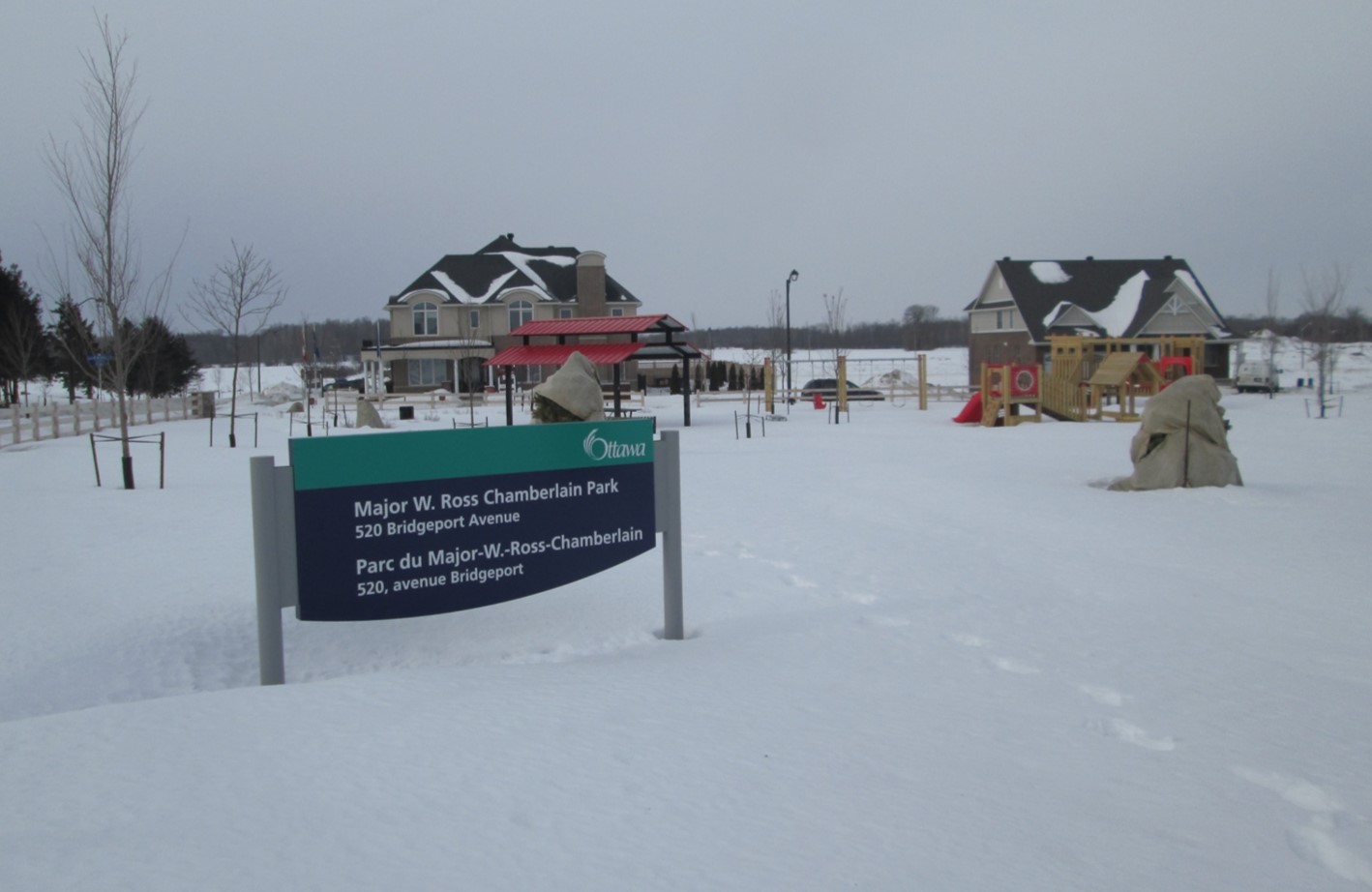 The Major W. Ross Chamberlain Park is named in honour of Major William Ross Chamberlain, MC, who joined the Canadian Army in November 1941, and served in North-west Europe, Africa, Italy, and Indo-China during the Second World War. He gallantly served with the 4 Canadian Reconnaissance Regiment (4 Princess Louise Dragoon Guards) and was awarded the Military Cross (MC) for the exemplary courage he displayed as a young lieutenant leading a successful attack against German positions on May 21, 1944.