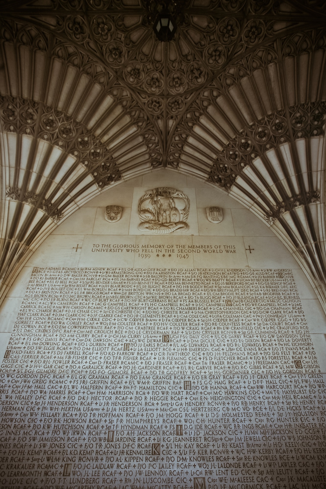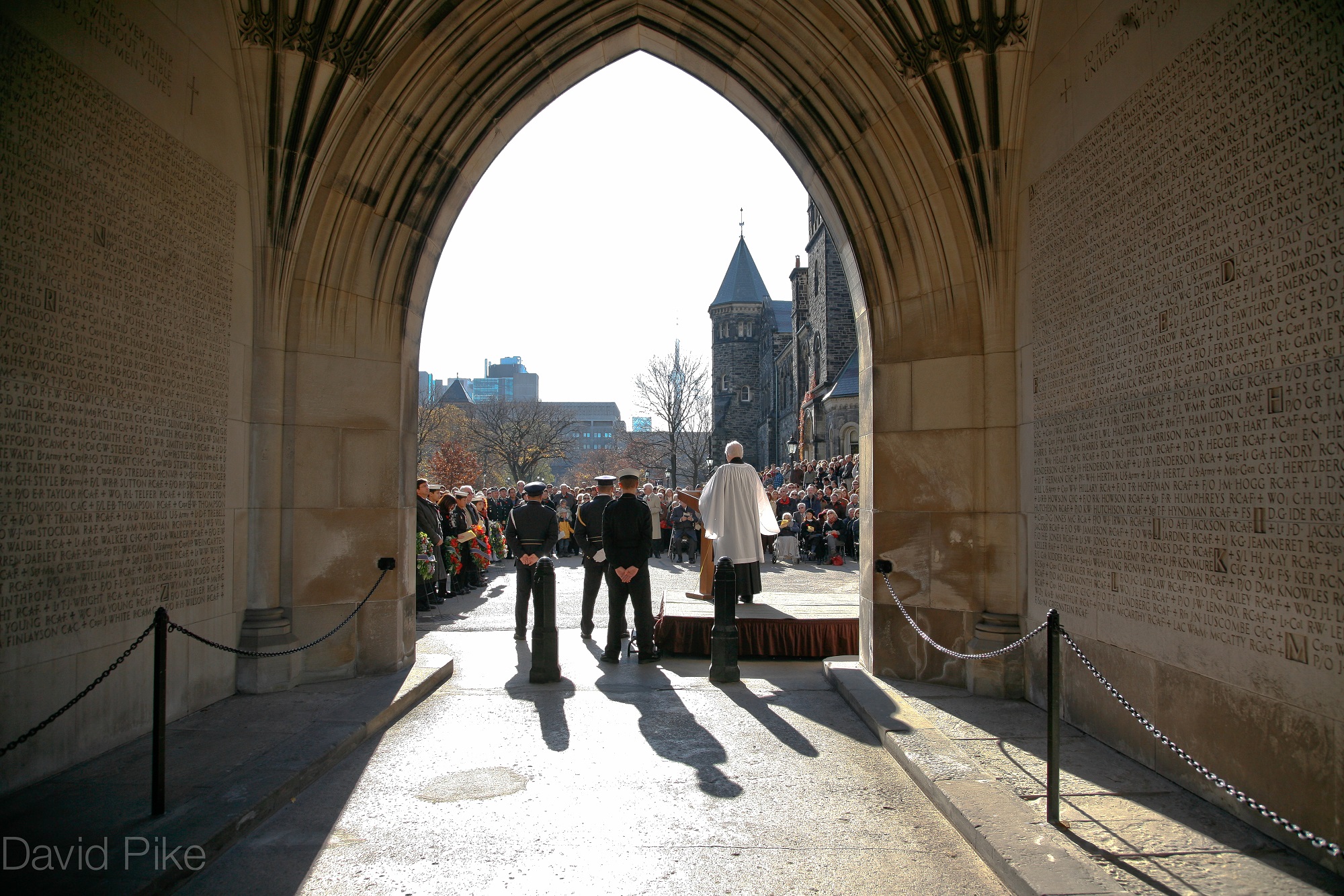 This memorial is dedicated to University of Toronto members killed in the Second World War. It was erected by the University of Toronto Alumni Association.