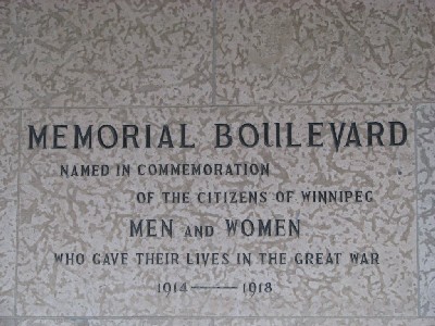Memorial Boulevard has a broad median which features the Winnipeg Cenotaph. The beautiful treed boulevard was a more fitting symbol than a traditional stone monument.