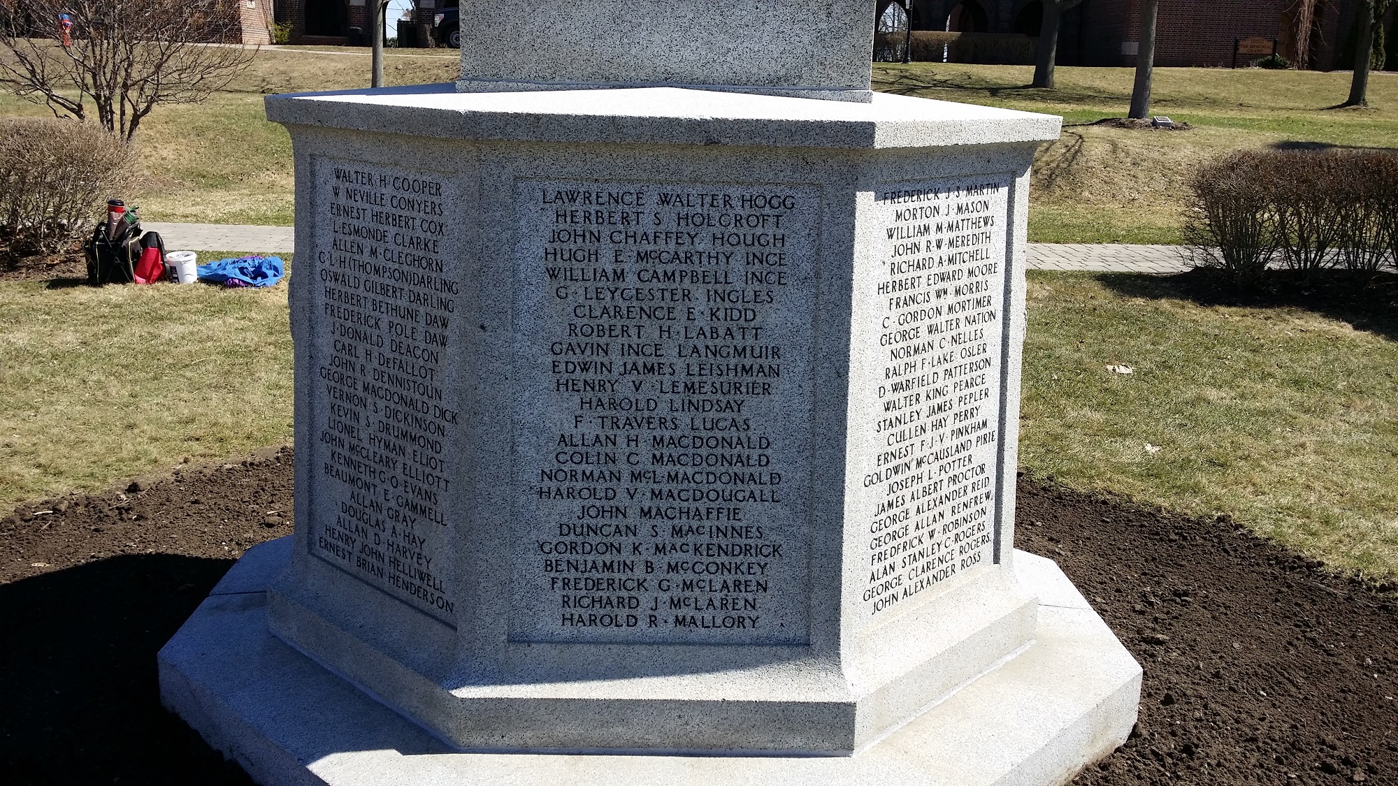 In May 1919, a Memorial Committee discussed a Wayside Cross to be erected in memory of those who served in the First World War and in May 1920 the Committee decided on an Iona Cross of Canadian grey granite. The cross was a gift from Trinity College School Ladies' Guild and dedicated on June 11, 1922.