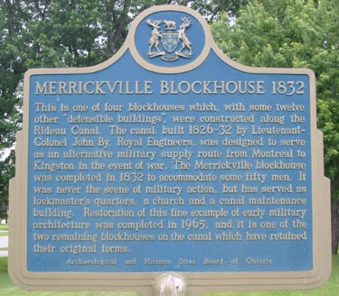 This is one of four blockhouses which were constructed along the Rideau Canal. The canal, built 1826-32 by Lieutenant-Colonel John By, Royal Engineers, was designed to serve as an alternative military supply route from Montreal to Kingston in the event of war.